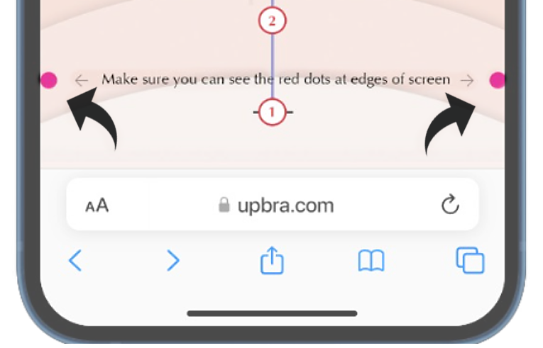 A: Place the base of your phone (without cover) firmly against your body, and under but not touching your breast. Make sure it touches your body! Although our instruction photos show a bra being worn, for accurate results, measure without a bra on.